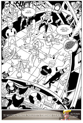 As I was artworking this, Hev and I were getting new carpet laid in the bedroom and hallway, so this was done in the front room, surrounded by lots of displaced furniture. Tomorrow (Wednesday) they put the new carpet in the lounge, so I'll be camped out in the bedroom with Hev. Meanwhile the Kickstarter for MNDT has finished, succesfully, and I have a couple of final pages of artwork to do - the crowd scenes featuring the sponsors - before I can send the whole book off to the printers.